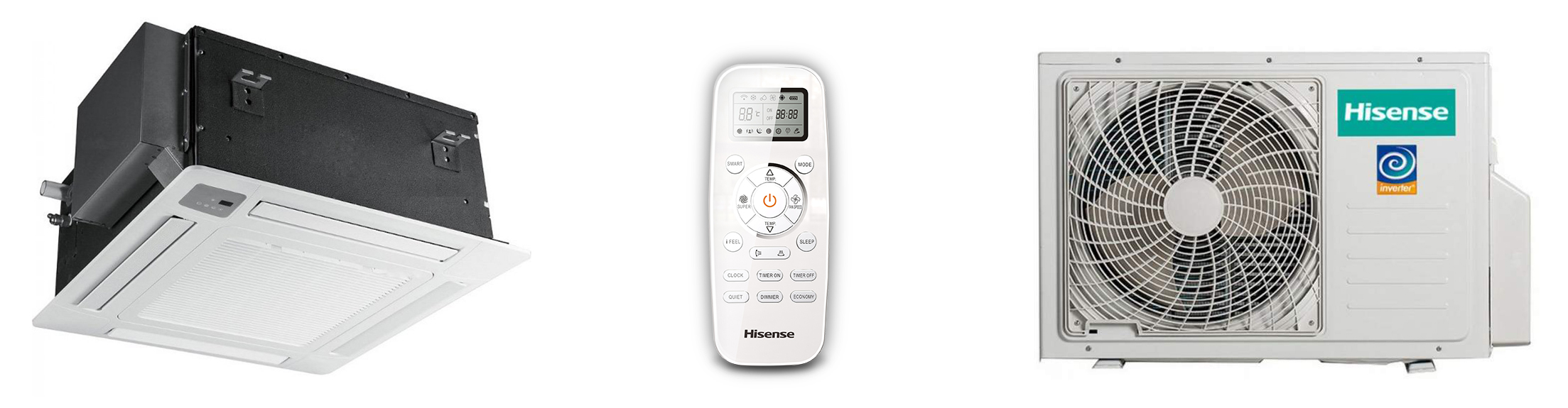 Инверторная кассетная сплит-система Hisense AUC-18UR4SAA2/AUW-18U4SS рассчитана на работу в помещении площадью до 35 кв.м. Встраивается в подвесную потолочную конструкцию.