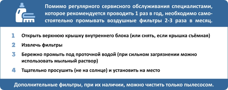 • Очистка: Автоматический 30-минутный цикл самоочистки внутреннего блока. После завершения прибор отключается самостоятельно. Доступен в режимах охлаждения и осушения.