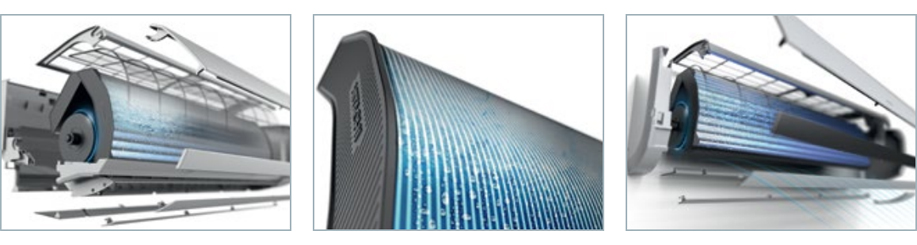 • Автоматическая роботизированная очистка фильтра — эффективно собирает специальным механизмом скопившуюся на стальном фильтре грязь и пыль, отправляет ее в специальный контейнер, который легко извлекается и моется. Такая технология обеспечивает постоянную чистоту фильтру кондиционера.