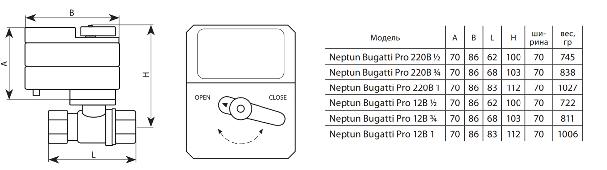 Шаровой кран с электроприводом Neptun Bugatti Pro / 12В / 1/2"