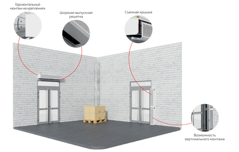 Путем создания мощного потока надежно защищают помещение от попадания теплого или холодного воздуха, пыли, насекомых. Повышают эффективность отопления, сокращая эксплуатационные расходы. Предназначены для установки в складские помещения, производственные комплексы и цеха, логистические центры, автосервисы, подземные паркинги и т.д.