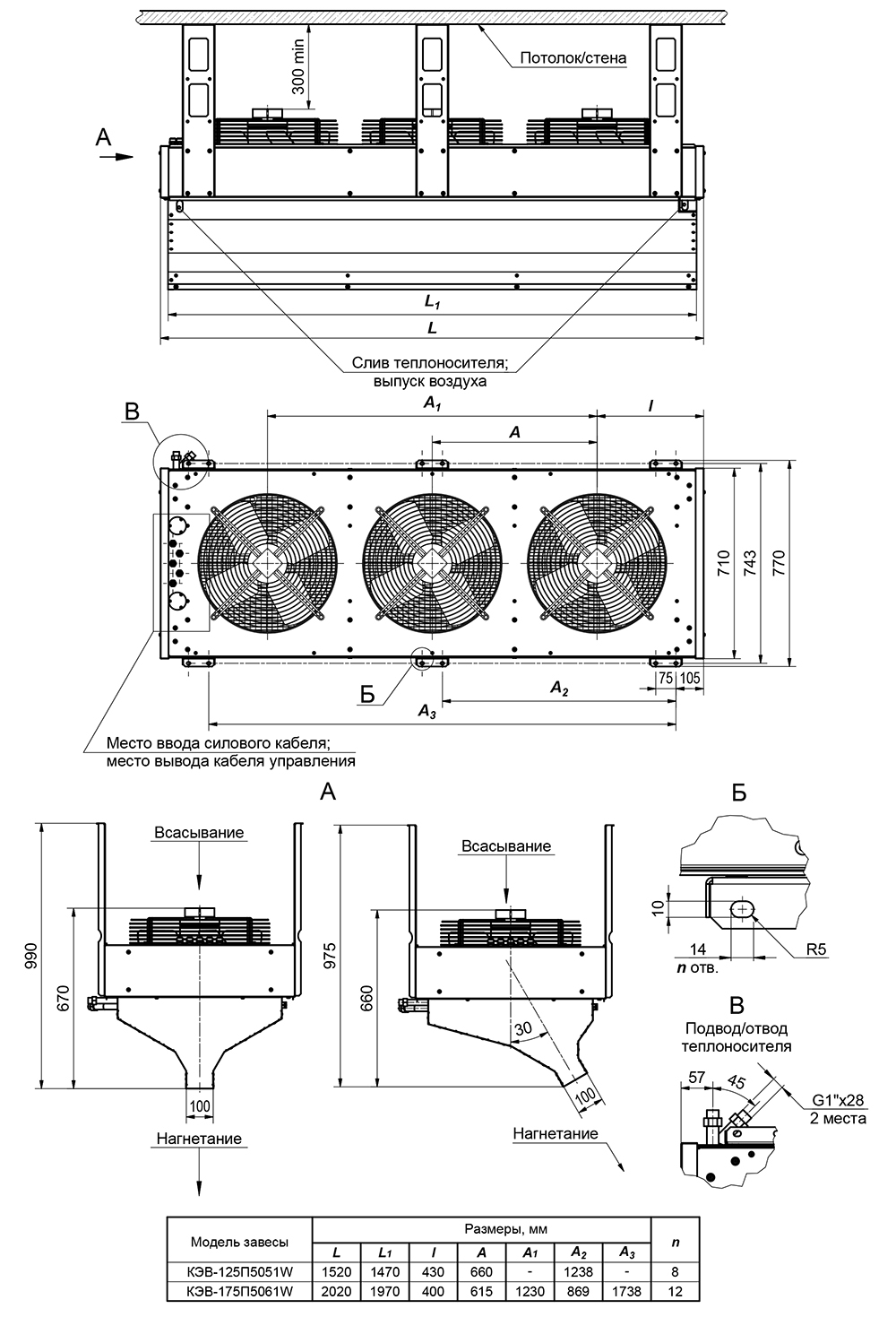 Габаритные и установочные размеры: