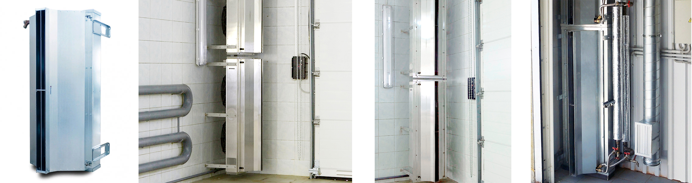 Промышленная тепловая завеса шиберующего (отсекающего) типа из оцинкованной стали с защитой корпуса IP54 (допускается капельная влага, туман). Устанавливается внутри помещения, горизонтально над проемом или вертикально, сбоку от него, как можно ближе к краю. При большой ширине проема можно располагать сразу несколько завес вплотную друг к другу и управлять ими с одного пульта. Применяется в складских помещениях, гаражах, производственных предприятиях, ангарах, самолетных и вертолетных площадках, автомойках и других помещениях большой площади.