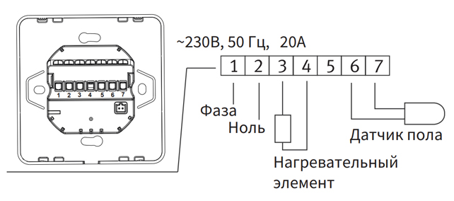 • Ручной режим — терморегулятор будет включать или выключать подогрев пола для поддержания заданной температуры все время, в независимости от действующей на данный момент программы.